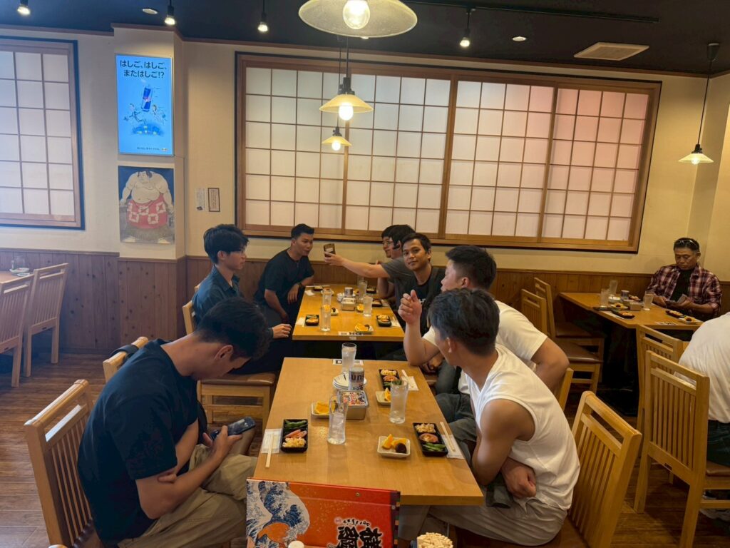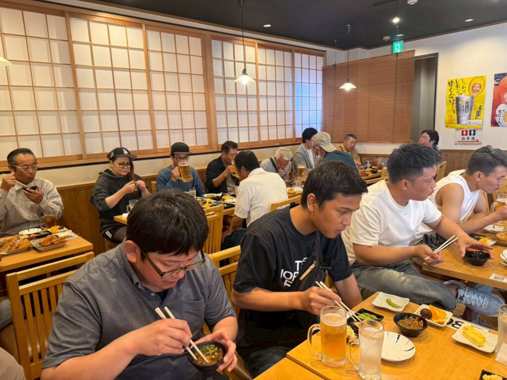 「衣がサクサクでたまらん!」「現場の疲れが吹っ飛ぶ美味さだ!」と、職人たちも大満足。美味しいものを皆で共有する時間は、普段の現場の緊張感を解きほぐし、親睦を深める大切なひとときとなりました。