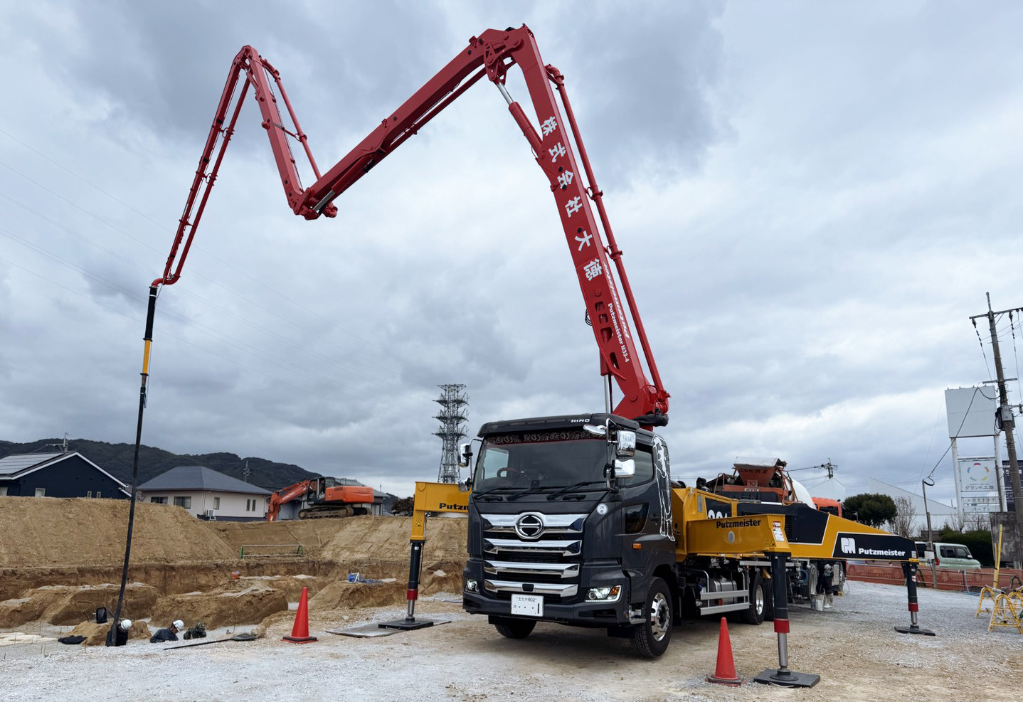 本日は、大きな「コンクリートポンプ車」を使って行う、コンクリート圧送(あっそう)の様子をレポートします!
