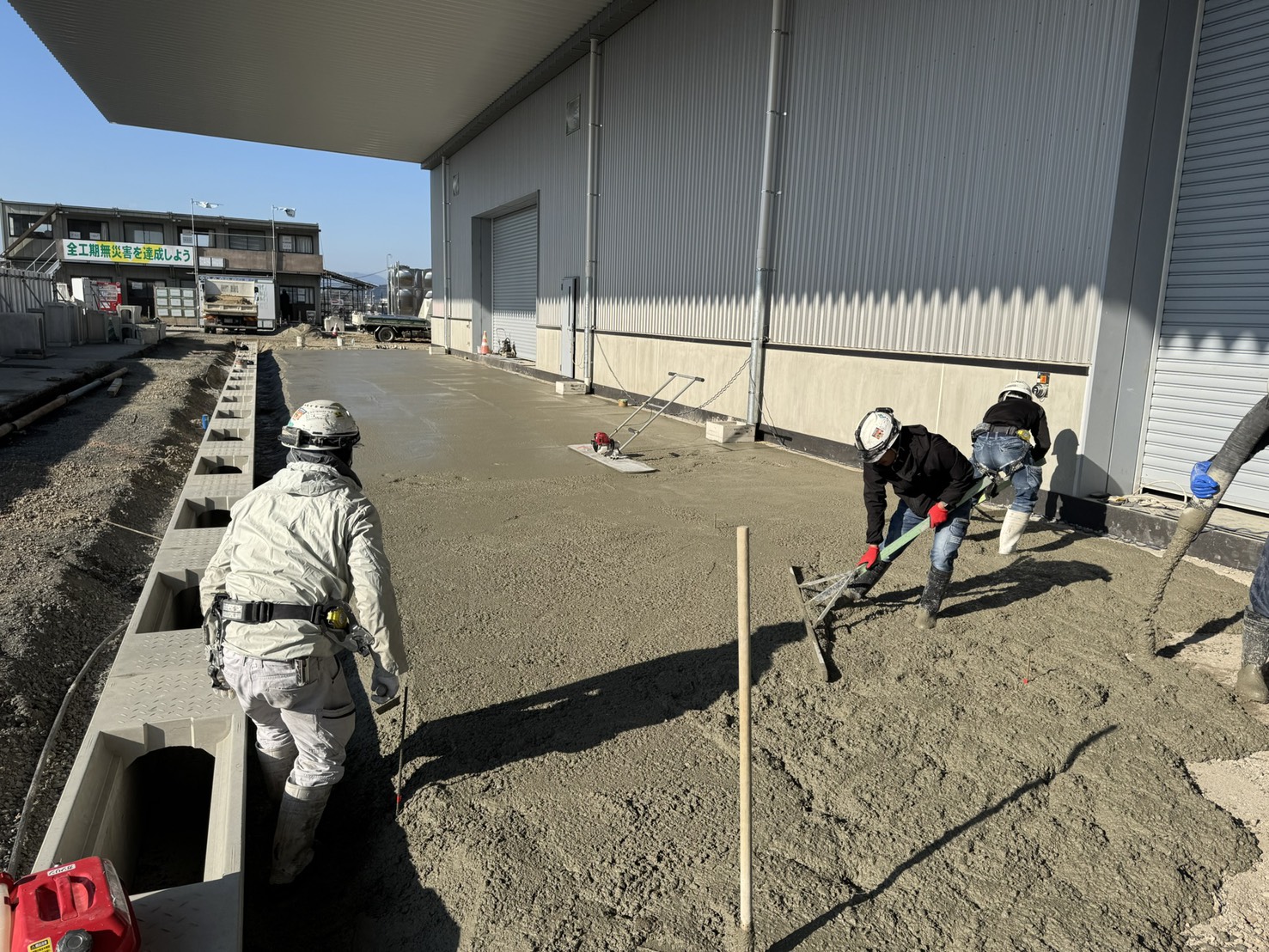 マシンのパワーと職人の感覚が合わさって、最高の床が出来上がります。🚧
