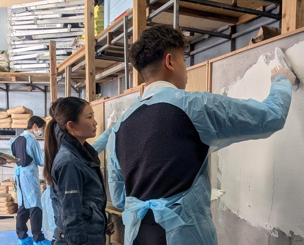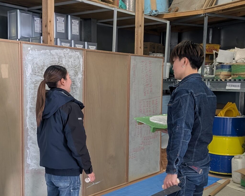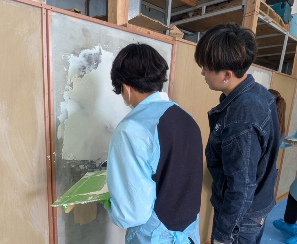 慣れない道具に戸惑い、思うように塗れなくて悔しい思いをしたあの日。 学生さんたちが「恐る恐る」でも丁寧に塗ろうとする姿を見て、先輩たちは「自分もこうやって、一歩ずつ教えてもらったんだな」と、当時の緊張感と感謝の気持ちを思い出していました。😊💪
